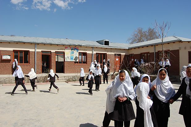 The school, located in the west of Kabul, was built 5 years ago. There are eight classrooms, a library and a laboratory. 2,800 students are divided in two shifts. The school offers classes from grade1-12 and each class has 40-60 students.