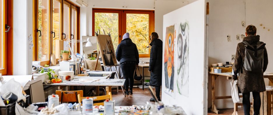 Am 16. November 2022 war es wieder soweit – der HKS-Campus an der Großen Straße öffnete, anlässlich des Hochschultags, für alle Interessierte die Türen. Rund 100 Besucher*innen waren vor Ort und konnten zahlreiche, lebendige Einblicke in Studium und Lehre an der HKS Ottersberg gewinnen. Neben studentischen Führungen gab es Workshops, Mappenberatungen und offene Werkstätten und Ateliers, mit Ausstellungen und einem Kino. Dabei konnten Studieninteressierte aus ganz Deutschland das Studienleben hautnah erleben. Außerdem gab es selbstverständlich Infos zu allen Studiengängen direkt vor Ort, sowie ein online Programm.