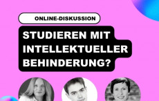 ARTplus-Student Ole Bramstedt, ARTplus-Projektleiterin Angela Müller-Giannetti und HKS-Professorin Dr. Maren Witte gewähren in der Online-Diskussion "Studieren mit intellektueller Behinderung" Einblicke in ihre Erfahrungen.