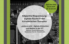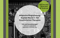 Die Arbeitsgruppe #digiarthe veranstaltet eine Ringvorlesung, bei der sich an 5 Terminen mit dem Thema "Digitale Räume in den Künstlerischen Therapien" auseinandergesetzt wird.