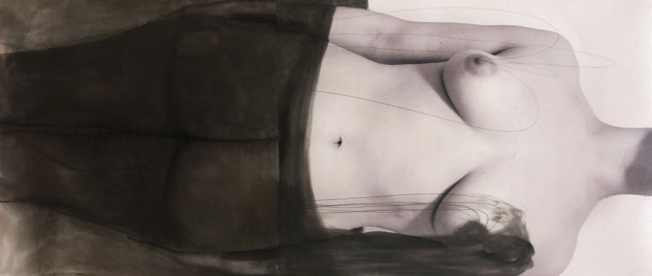 In ihrer ersten Einzelausstellung „STRIPPED" im Kunstverein Rotenburg/Wümme beschäftigt sie sich vor allem mit dem weiblichen Identitätsbegriff und gesellschaftlichen Phänomenen, wie der Datingkultur des 21. Jahrhunderts und den medial produzierten Bildern von Begehren und seiner symbolischen Kraft. Sie fragt nach Authentizität und Individualität im Zeitalter von Optimierungswahn und Digitalem. Sie sucht nach einer Verortung ihrer Identität, als junge Frau und instrumentalisiert hier für ihren Körper selbstbestimmt zum „Nutzobjekt". Er wird zum Ausgangspunkt, Zeichengrund und zum Träger für Vermaßung und Maskierung, als Aufbegehren gegen die Objektifizierung des weiblichen Körpers. Oft entstehen ihre Arbeiten aus einem soziologisch, phänomenologischen, aber auch humorvollen Blick heraus.