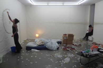 Ein semester- und studiengangsübergreifendes Projekt, bei dem kleine gemischte Gruppen regelmäßig den Ausstellungsflur der HKS Ottersberg bespielen.