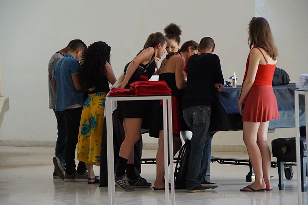 Im Venezuela arbeiteten die ca. 30 Studierenden aus beiden Ländern dann unter dem Titel Cuerpos de Lengua – KIIL VIDA! im Backstagebereich des Museo de Arte Comtemporáneo del Zulia (Maczul) an verschiedenen Projekten. Hierbei wurden die Ergebnisse der im April durchgeführten Projekte in Worpswede und Maracaibo zur Grundlage der Diskussion. Allen Teilnehmer_innen war bewusst, dass ein freies unbeschwertes Arbeiten im öffentlichen Raum Venezuelas im Moment von vielen Schwierigkeiten begleitet werden würde. Aus diesem Grund fiel die Entscheidung, das Angebot der FEDA (Facultad de Experimental de Arte) anzunehmen, im Maczul zu arbeiten. Am 11. November 2017 wurden alle Projekte und Performances gemeinsam mit weiteren Ausstellungen im Museum einem interessierten Publikum präsentiert. Die partizipatorischen Elemente der Projekte begeisterten die venezolanischen Gäste sehr und der frische Geist junger Künstler_innen motivierte viele, an den Angeboten teilzunehmen. Die positive Resonanz nahm die Gruppe mit, um weitere Projekte mit Kindern im abseits gelegenen Stadtteil Lago y Sol zu realisieren.