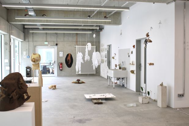 Ein semester- und studiengangsübergreifendes Projekt, bei dem kleine gemischte Gruppen regelmäßig den Ausstellungsflur der HKS Ottersberg bespielen.