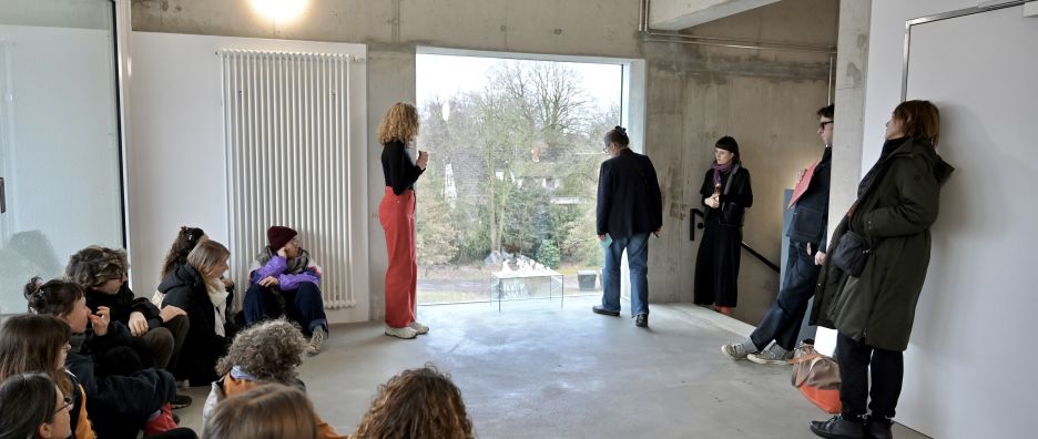 Ein semester- und studiengangsübergreifendes Projekt, bei dem kleine gemischte Gruppen regelmäßig den Ausstellungsflur der HKS Ottersberg bespielen.