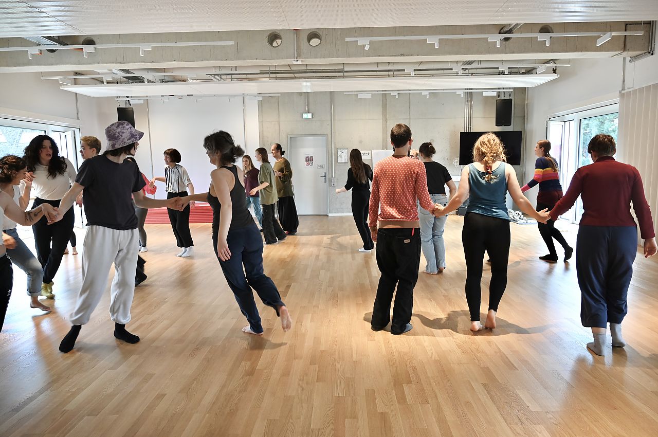 Im Studium spielt daher neben der Vermittlung künstlerischer Kernkompetenzen in Schauspiel, Tanz und Performance das tägliche Training von Improvisation und Handlungskompetenz eine große Rolle. In zwei Schwerpunktbereichen werden vertiefte Kenntnisse im Tanz oder Theater wie auch in den Feldern von Regie oder Choreografie, von Dramaturgie und Projektentwicklung vermittelt. Am Ende des Studiums steht die eigenständige Durchführung eines Abschlussprojekts, dessen Stärken und Schwächen kritisch reflektiert werden.