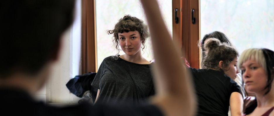 Bereits beim Ankommen verwandelte sich der Vorlesungsraum augenblicklich in einen atmosphärisch künstlerischen Raum und bot uns 26 Teilnehmer*innen genügend Platz für Tanz.