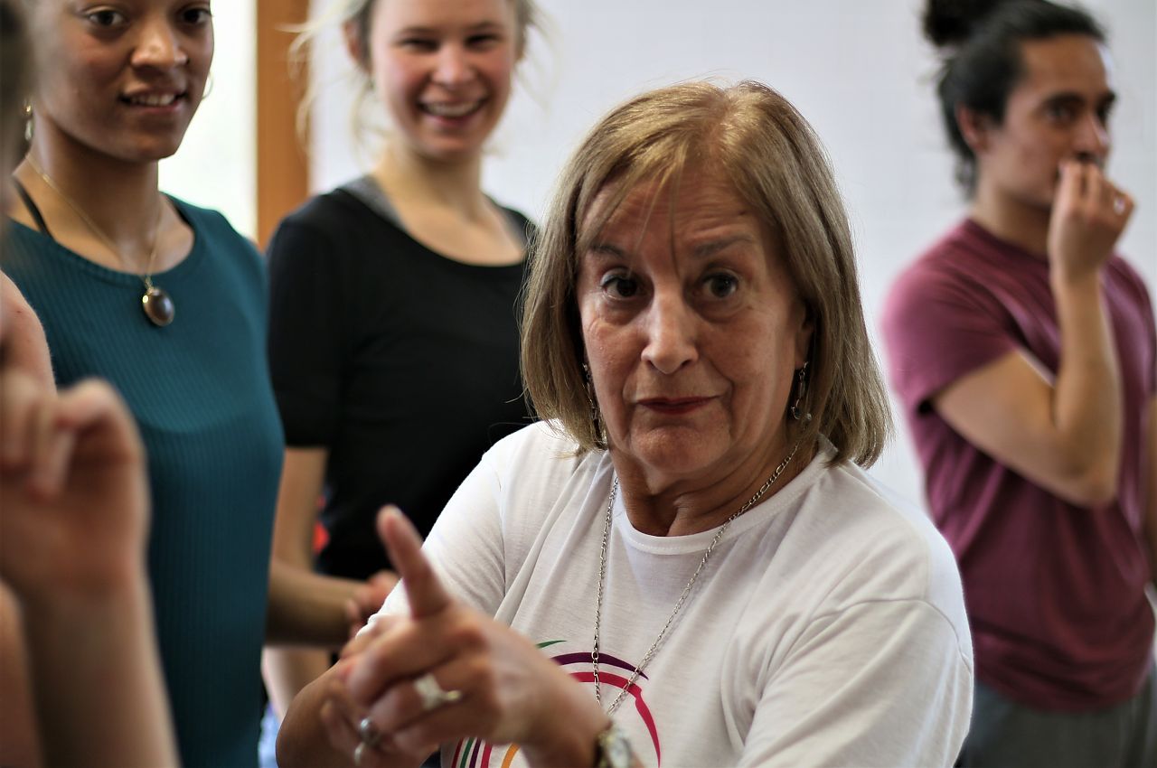 Susana Gonzáles Gonz, Dozentin an der Universidad de Buenos Aires, begann den Workshop mit einer sehr eindrücklichen Positionierung von Danza Intergradora. Wir saßen alle auf Stühlen, auf gleicher Höhe wie Rollstuhlfahrer, tanzten später auch auf Stühlen sitzend und taten damit den ersten Schritt in ihrem Konzept: „ . . wir müssen uns selbst integrieren!"